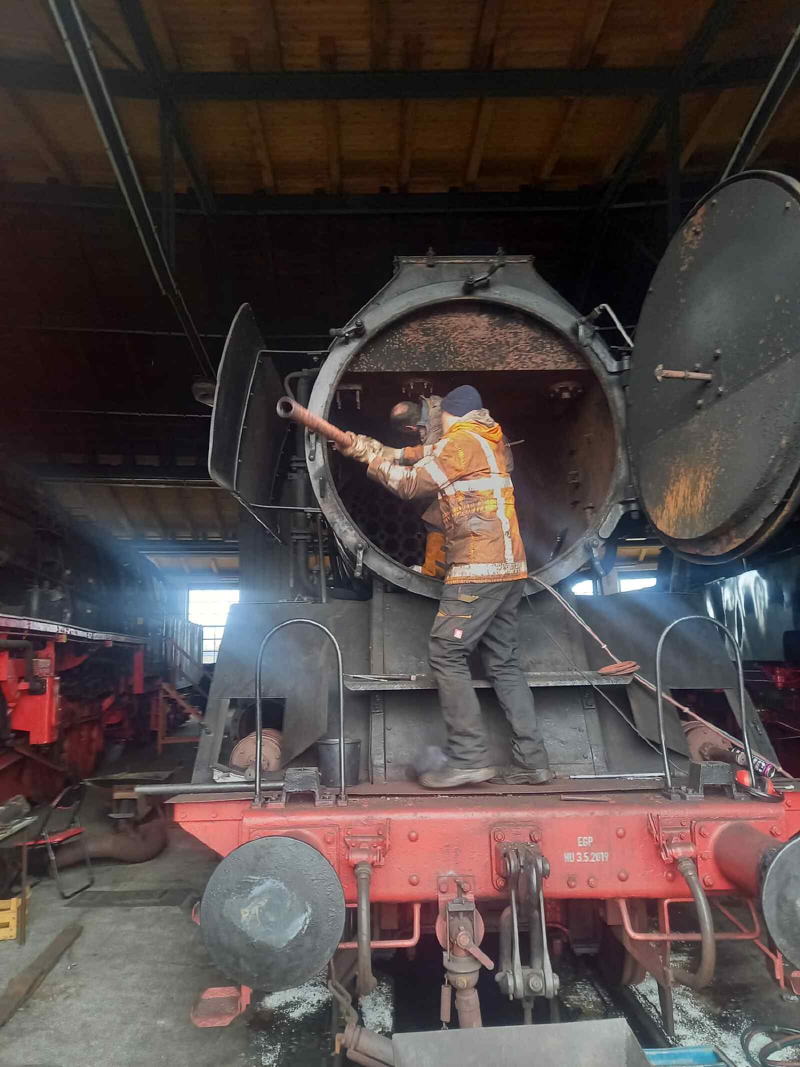 Am vergangenen Donnerstag wurde zunächst eine Probefahrt von Klostermansfeld nach Nordhausen und zurück durchgeführt, die zur Zufriedenheit unserer Kollegen ausfiel. Die folgenden Bilder zeigen sie bei der Probefahrt am 18.12.2025 in Klostermansfeld, in Nordhausen und bei der Motorenkontrolle im Inneren der Lok.