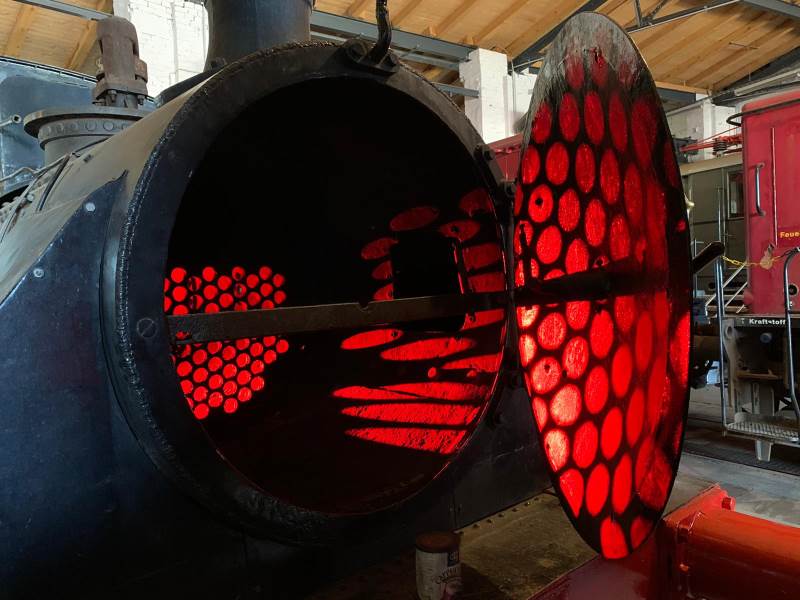 Ziel des Eigentümers ist eine betriebsfähige Instandsetzung. In den letzten Tagen und Wochen wurde intensiv und natürlich unter Einhaltung aller Distanzregeln an unserem Neuzugang, die bisher nur den Arbeitstitel Karlsruhe trägt, gearbeitet. Da insbesondere der Dampfkessel der neuralgische Punkt bei einem solchen Vorhaben ist, wurde diesem besondere Aufmerksamkeit gewidmet. Zunächst wurden alle darin befindlichen Rohre entfernt und die Dicke der Kesselwand gemessen. Dabei ergaben sich durchaus interessante Lichtspiele, als eine Lampe durch die nun leeren Rohrwände schien.