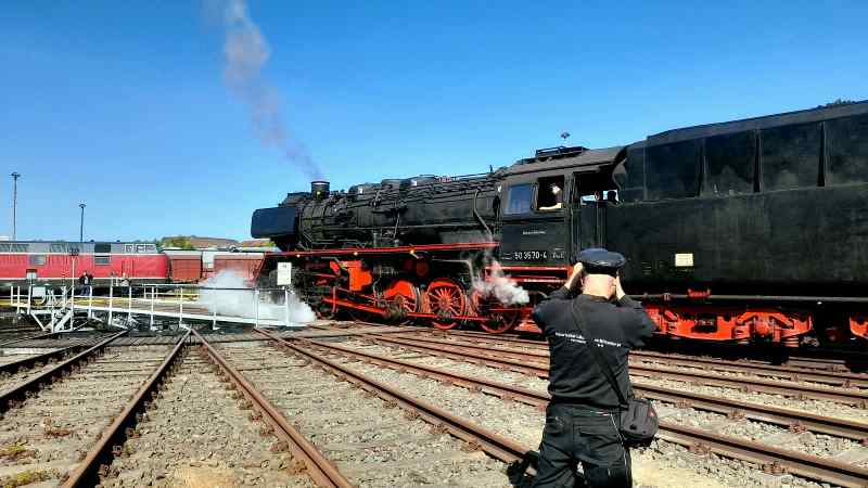 Am Freitag vor der Veranstaltung wurden unsere betriebsfähigen Fahrzeuge aufgerüstet. Sie wurden mit Kohle beladen, die Wasserbehälter gefüllt und die Fahrzeuge geputzt. Die Dampflok 50 3570 wurde zudem geschmückt, weil sie in diesen Tagen ihren 80. Geburtstag feiert.
