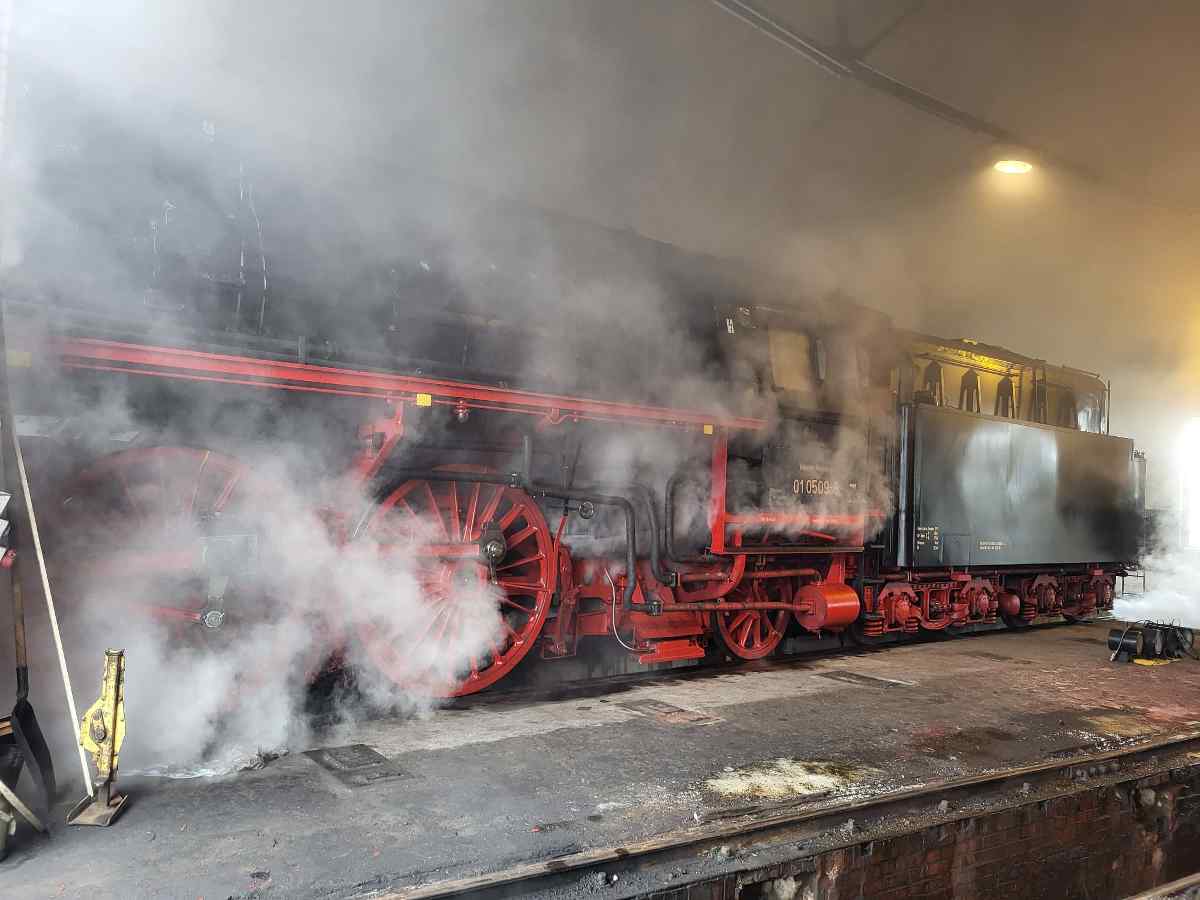 Am Dienstag und Mittwoch dieser Woche galt es, erstmalig in diesem Jahr wieder zwei Dampfloks anzuheizen. Zunächst wurde 50 3570 unter Dampf gesetzt, die ihrerseits die 01 509 aufdampfte. Nachdem dabei jedoch einige Teile des Lokschuppens eingenebelt wurden, wurde die ganze Aktion nach draußen verlegt. Bei der Gelegenheit wurde auch gleich der Tender der 50 3570 mit Kohle beladen.