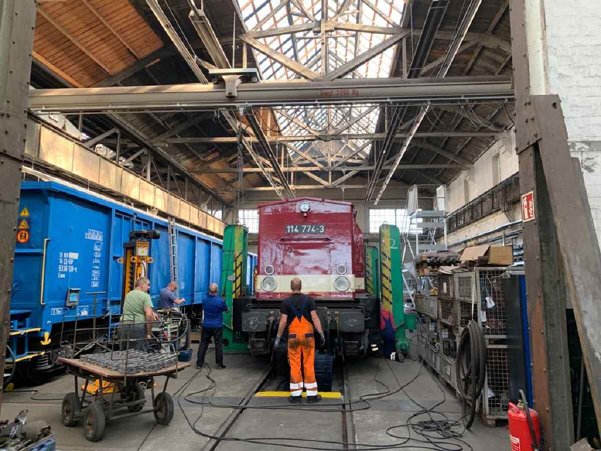 Heute ein kleiner Sonderbericht über die Fahrwerksuntersuchung an unserer Diesellok der Baureihe V100, die die Betriebsnummer 114 774-3 trägt. Wie bereits im letzten Newsletter berichtet, erhält die Lok nun diese Untersuchung, um freizügig auf dem Schienennetz in Deutschland verkehren zu dürfen. Dazu ist das Fahrwerk der Lok zu prüfen und gegebenenfalls instandzusetzen.
