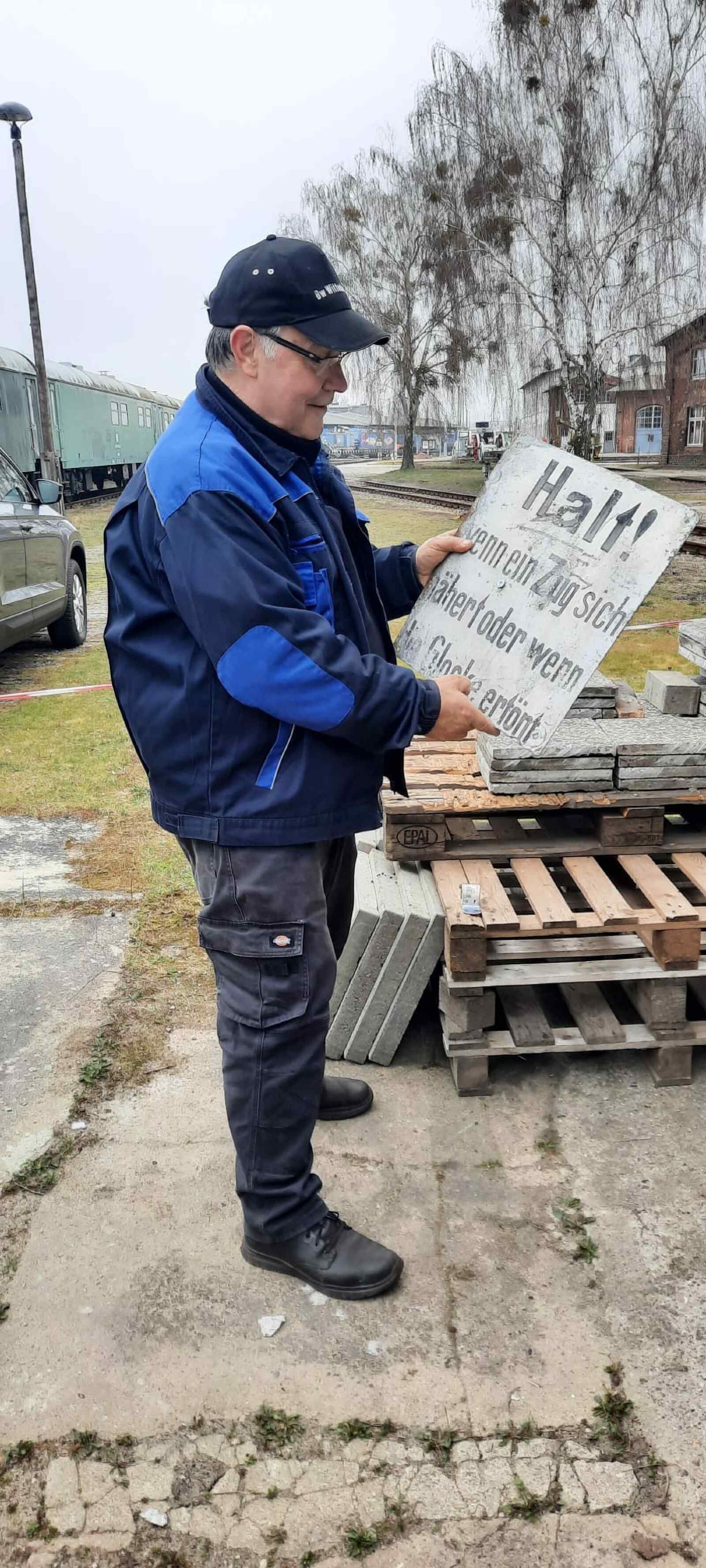 Auch im Gelände ging es weiter, denn wir möchten es möglichst gut bis zum Saisonstart des Museums am Ostersamstag für unsere Besucher vorbereiten. Hierzu haben einige Kollegen historische Warnschilder aufgestellt, die Sie, liebe Besucher des Museums, an unübersichtlichen Stellen erinnern sollen, dass auf den nahegelegenen Gleisen Eisenbahnfahrzeuge verkehren können. Sicherheit ist eben heute auch immer ein Thema und wir müssen auf jeden Fall ausschließen, dass es zu ungewollten Kontakten zwischen Menschen und Maschinen kommt.