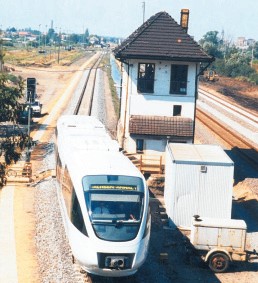 Am 20. August 1996 präsentierte Siemens den neuen Nahverkehrstriebwagen "Talent". Hier ein Blick von der Ritzer Brücke. Er kam jedoch nie wie geplant auf den Nebenstrecken der Altmark zum Einsatz.