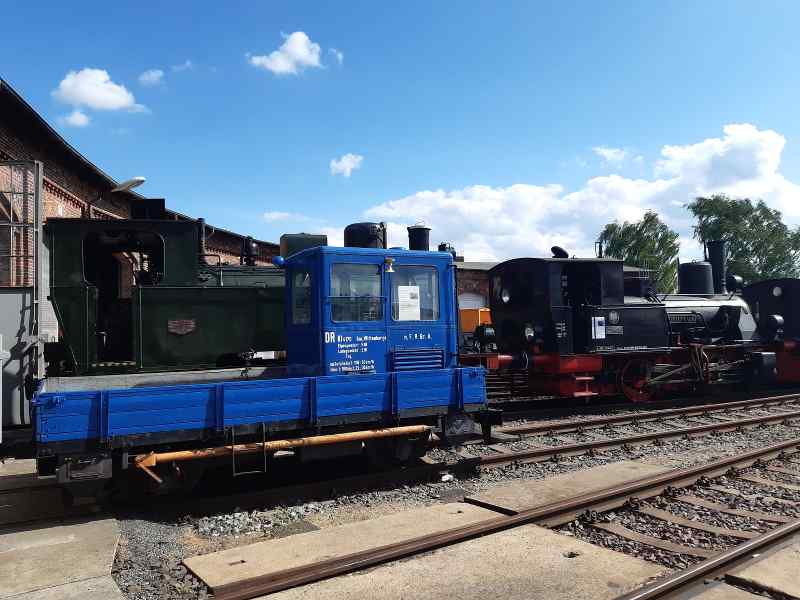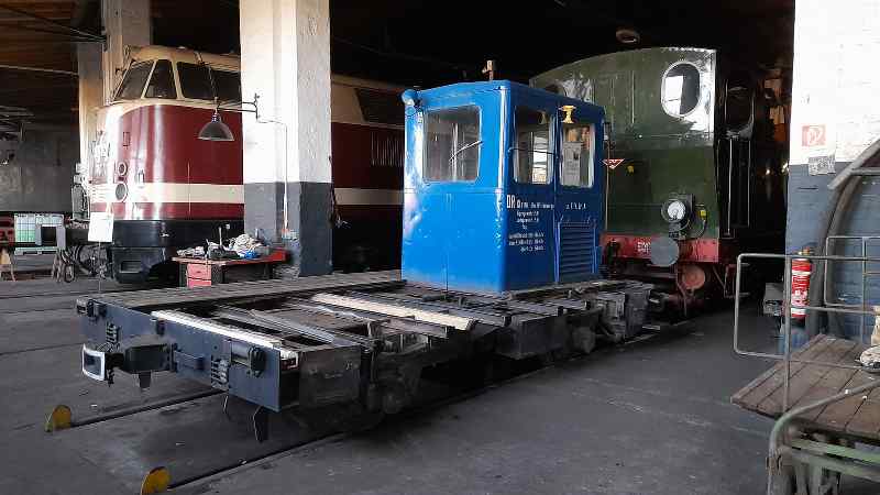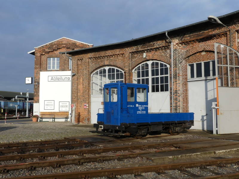 Sonstiges Fahrzeug Schwerkleinwagen Typ SchöneweideDieses Fahrzeug, kurz Skl genannt, ist ein Fahrzeug, das in den 60er Jahren speziell für die Bahnmeistereien entwickelt wurde. Es hat eine geschlossene Fahrerkabine, in der auch der Vierzylinder-Dieselmotor untergebracht ist, und eine große Ladefläche, auf der Werkzeuge und Ersatzteile für die Strecken- und Signalinstandhaltung gelagert werden konnte. Für diese Fahrzeuge gab es diverse Zurüstteile, wie zum Beispiel einen aufsetzbaren Teleskopkran sowie Anhänger zur Vergrößerung der Ladekapazität. Unser Fahrzeug diente bis 1994 der Bahnmeisterei Jerichow und konnte nach deren Auflösung durch den Verein übernommen werden. |