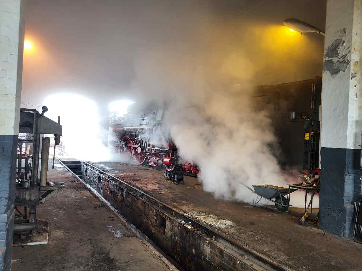 Am Dienstag und Mittwoch dieser Woche galt es, erstmalig in diesem Jahr wieder zwei Dampfloks anzuheizen. Zunächst wurde 50 3570 unter Dampf gesetzt, die ihrerseits die 01 509 aufdampfte. Nachdem dabei jedoch einige Teile des Lokschuppens eingenebelt wurden, wurde die ganze Aktion nach draußen verlegt. Bei der Gelegenheit wurde auch gleich der Tender der 50 3570 mit Kohle beladen.