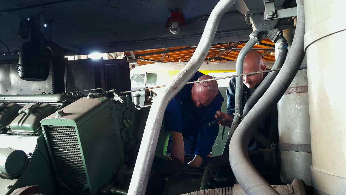 Bei der Diesellok 0604 trat nach Ende der letzten Veranstaltung leider ein Ölleck auf, das nun lokalisiert werden musste. Zum Glück stellt sich jetzt heraus, dass nur der Druckschlauch zum Öldruckmanometer im Führerstand undicht geworden war.