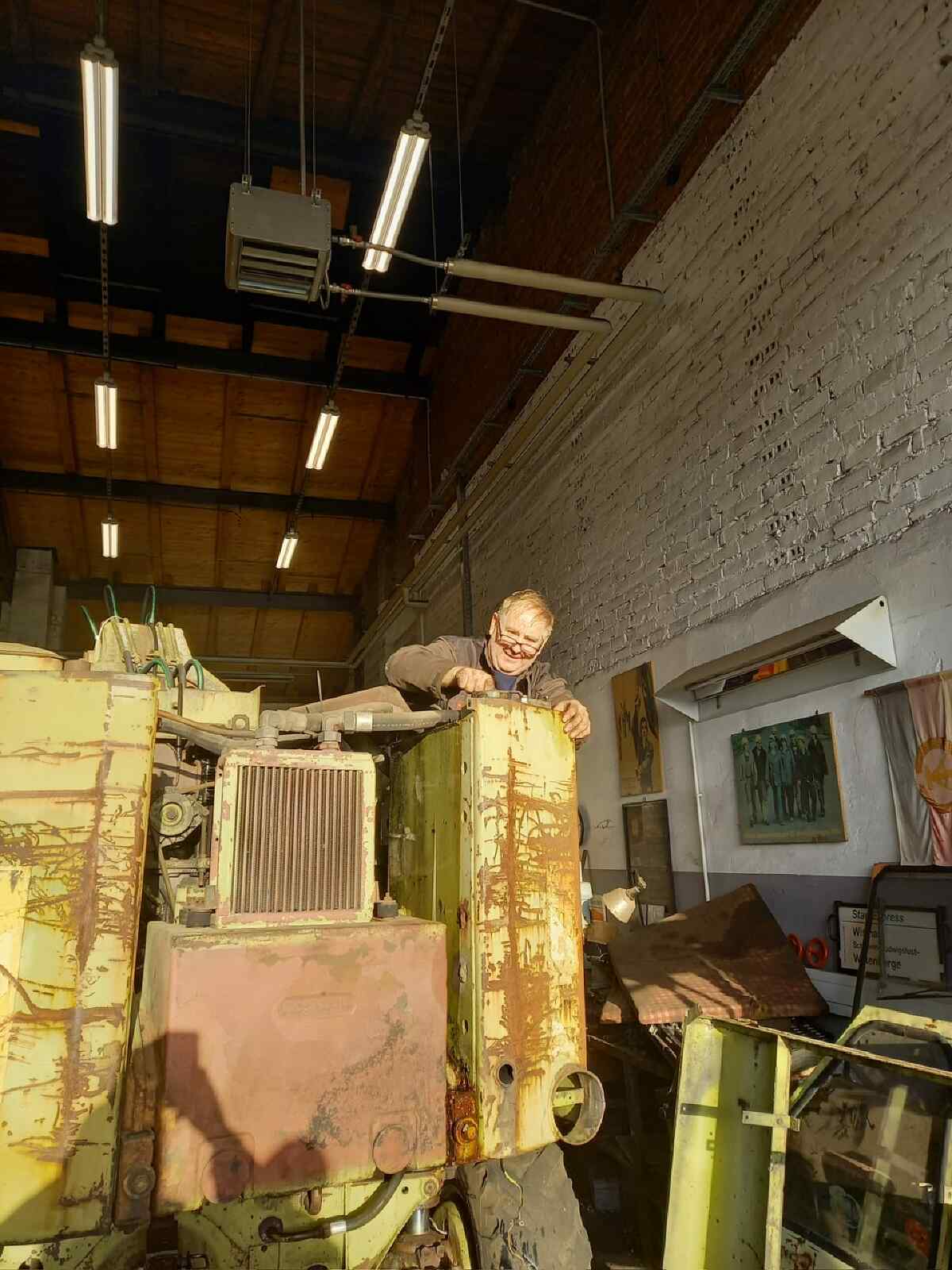 … verlagerten sich die Aktivitäten dann doch zunächst eher in den Lokschuppen. Hier gibt es Fortschritte von unserem Bagger T174 zu berichten. Nach intensiver Aufarbeitung des Antriebs und der Nebenaggregate sowie dem Ersatz aller Hydraulikleitungen ist der Zusammenbau nun soweit fortgeschritten, dass die Betriebsflüssigkeiten gefüllt werden können. Der erste Probelauf steht unmittelbar bevor.