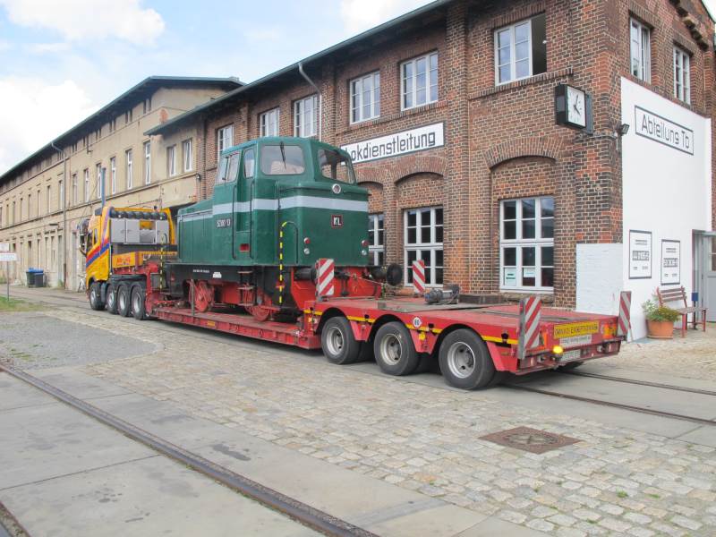 Bereits vor zwei Wochen fand eine weitere Rangierlok der Baureihe V 60 einen neuen Platz im rekonstruierten Lokschuppen. Die beiden gestern angekommenen Dieselloks aus den 70er Jahren komplettieren nun die Sammlung des Eisenbahnmuseum.