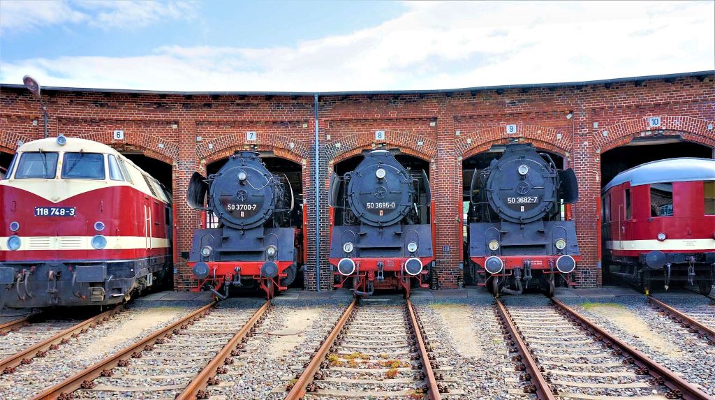 Die Dampflokfreunde Salzwedel konnten im historischen Lokschuppen Wittenberge beim Sommerdampf 2021 wieder zahlreiche Besucher aller Altersgruppen begrüßen. Mit dabei die Dampflok 50 3682-7, bekannt als „Schwarze Lady“ (2. von rechts), die seinerzeit in Salzwedel schon die Gäste bei Führerstandsfahrten in ihren Bann gezogen hat.